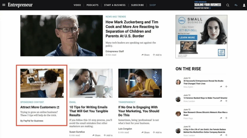 - WSJ Custom Content: Wall Street Journal’s sponsored section shows premium native integration
